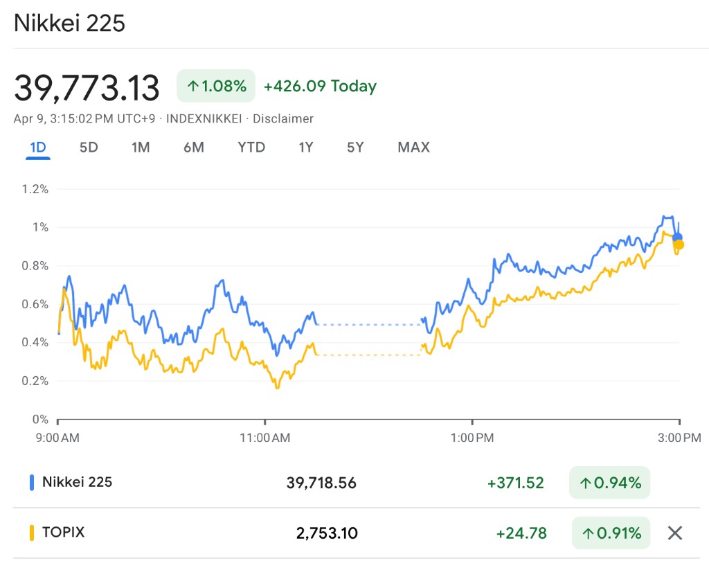 伯克希爾即將發行日債的消息一出,巴菲特青睞的日本五大商社(伊藤忠商事、丸紅、三菱、三井和住友)股價應聲上漲,拉高日股,日經 225 指數收漲 1.08% 報 39773.13 點,連漲 2 日,三菱商事、三井物產漲超 3%。