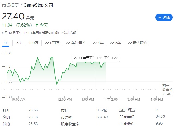 週四遊戲驛站盤中一度漲逾 16%。年度股東大會被迫推遲到下週一。有分析指出,咆哮小貓 Keith Gill 持有的遊戲驛站看漲期權在週三尾盤和週四交易中大幅縮水,這表明他可能已經出售了部分持倉,對遊戲驛站的押注減少。