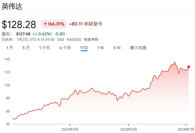 雖然 6 月出售股份數只佔黃仁勳個人持股的很小比例,但因作為 AI 龍頭的英偉達股價 6 月份持續大漲,當月的拋售套現讓老黃獲利頗豐。英偉達僅僅在 6 月份就上漲近 13%,今年累計上漲約 166%。