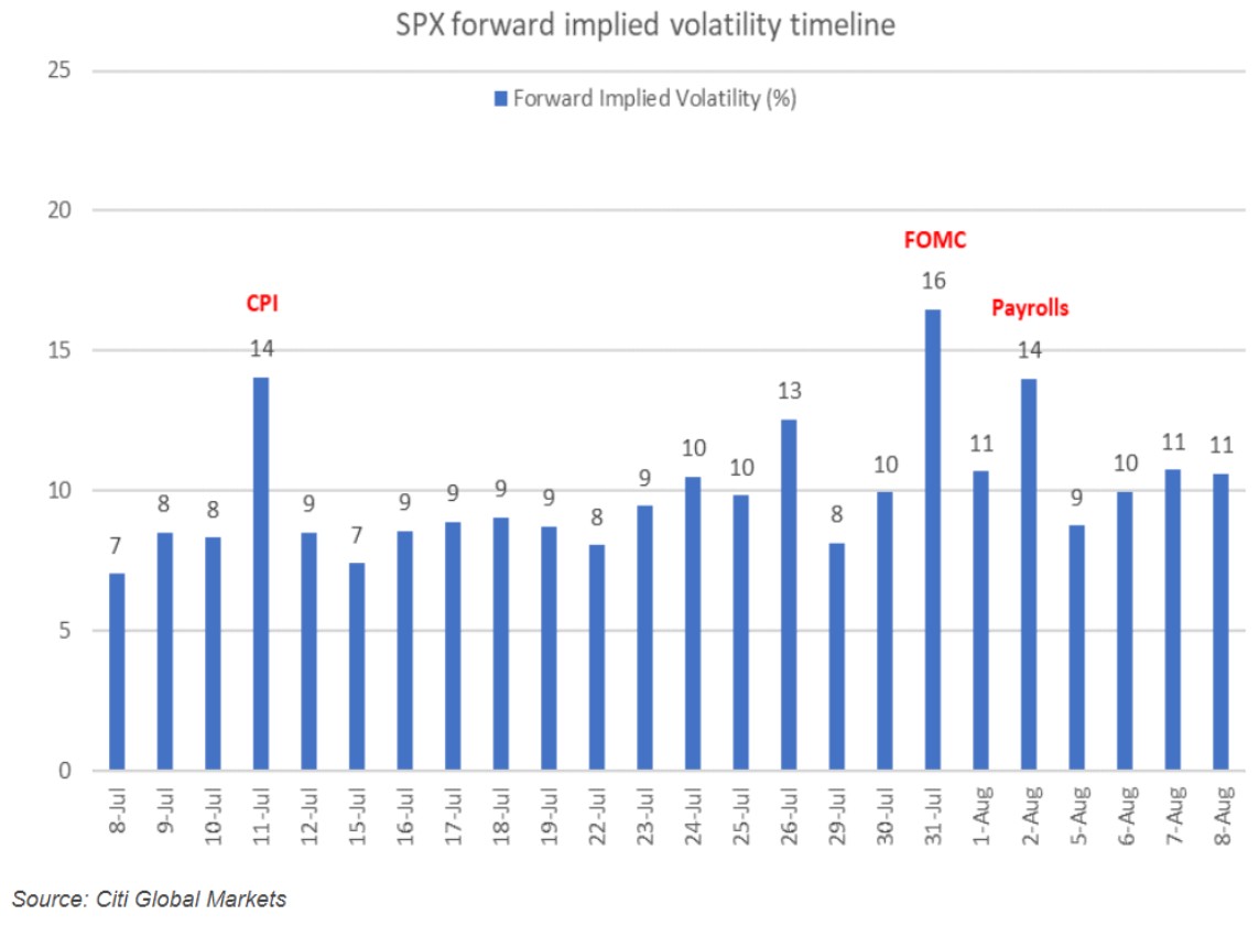 花旗集團美國股票交易策略主管 Stuart Kaiser 表示,期權市場押注標準普爾 500 指數將在週四的消費者價格報告之後朝某個方向波動 0.8%,具體取決於當天的平價跨式期權價格。