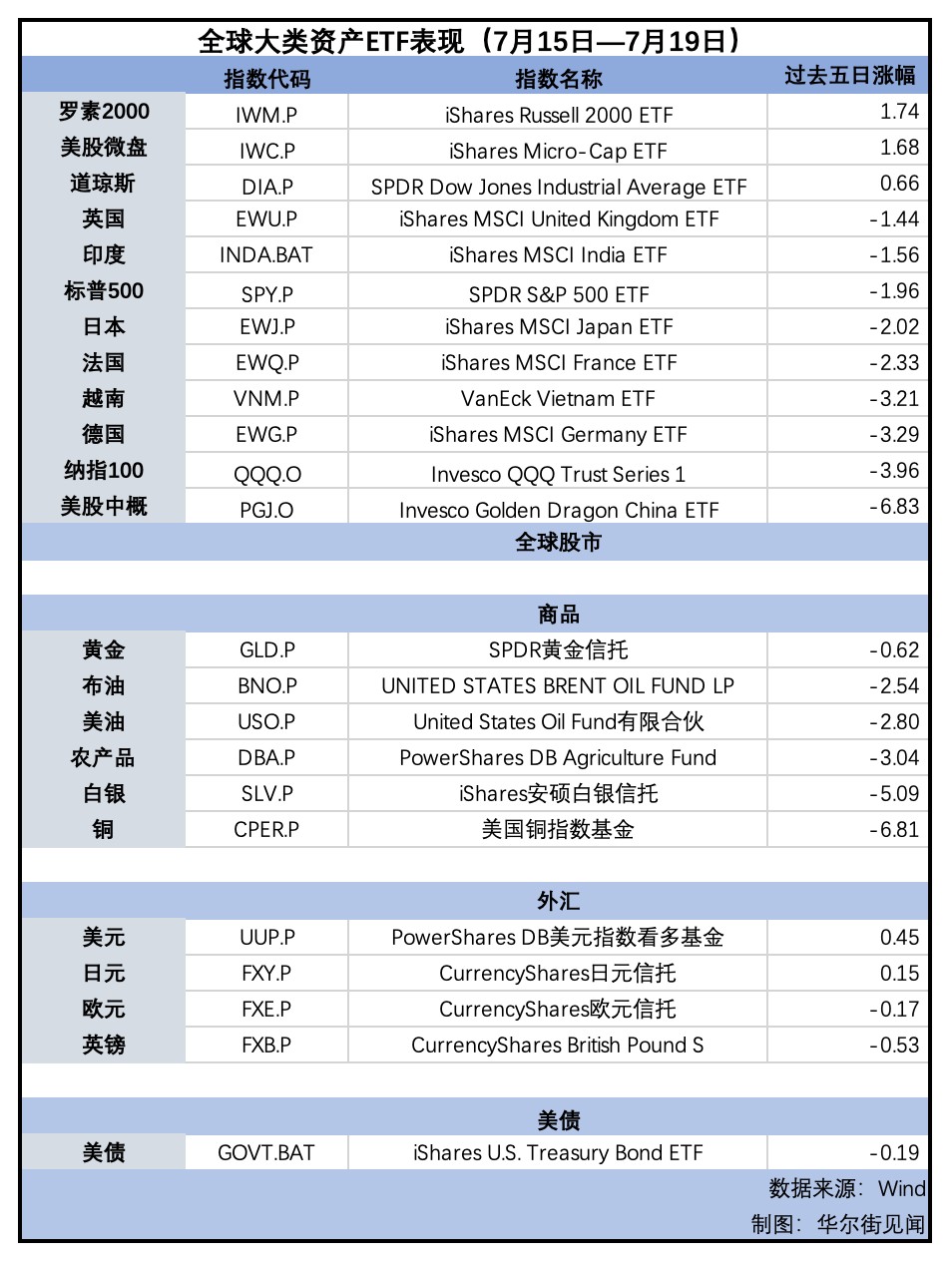 7月15日—7月19日當週,受“降息交易” 和 “特朗普交易” 影響,美股市場行情“大切換” 持續上演。投資者加速逃離大型科技股,小盤股成全場焦點。