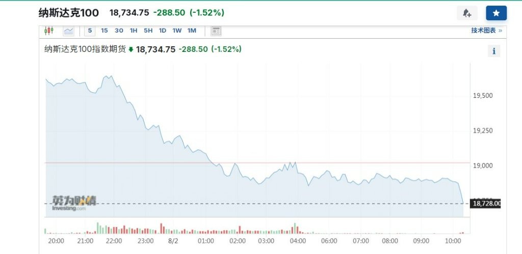 納斯達克 100 指數期貨跌幅擴大至 1.5%。