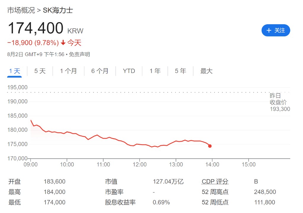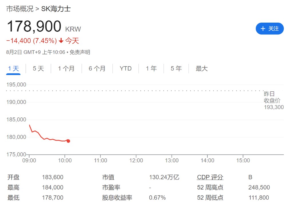 亞洲芯片股出現拋售潮,SK 海力士跌幅擴大至 10%。