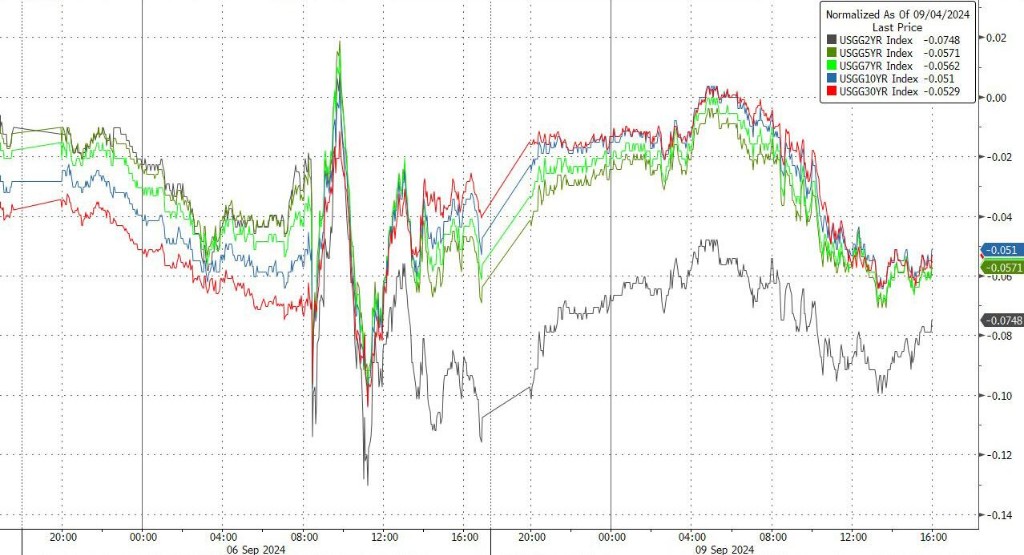 “非農次日”兩年期美債收益率漲超2個基點,2/10年期美債收益率曲線連續兩天結束倒掛,短債收益率脱離一年半低位,基債收益率徘徊一年多最低: