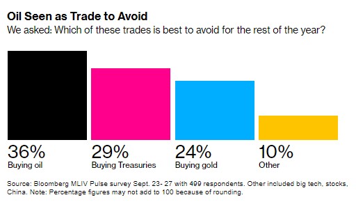 高盛資產管理公司多部門投資主管 Lindsay Rosner 表示,美聯儲和其他央行仍有很大的降息空間,這為美國經濟奠定了良好基礎,並使估值更加合理。然而,當被問及今年剩餘時間應避免的交易時,36% 的受訪者認為應避免購買石油,29% 的受訪者則選擇避免購買美國國債。