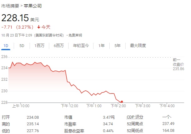 受這些消息影響,蘋果股價週三盤中跌幅擴大超 3.4%。