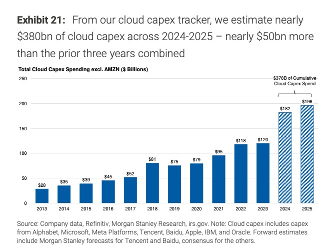 大摩談 AI 資本開支:雲大廠 “錢包足夠厚”,2025 可以進一步投入