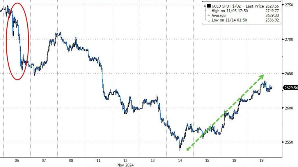 - 黃金:COMEX 12 月黃金期貨尾盤漲 0.80% 至 2635.50 美元/盎司。現貨黃金全天維持漲勢,美股盤前最高漲近 1.1% 上逼 2640 美元,尾盤漲 0.78%,報 2632.22 美元/盎司。