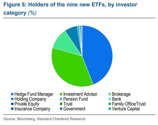 在美國比特幣 ETF 方面,渣打從遞交美國證監會 SEC 的 13F 文件中注意到,養老基金的報告持股僅佔九隻新比特幣 ETF 股份的 1%。