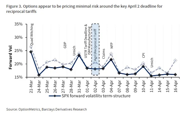 儘管投資者對 4 月 2 日的 “關税大限” 保持警惕,但期權市場顯示這遠非本月唯一重要的時點。