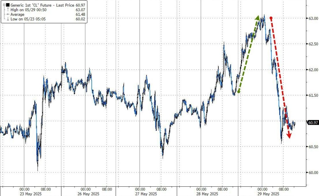 油價也一度因 “關税結束” 而上漲,然後因疲軟的數據和避險情緒拖累市場而回落。此外,哈薩克斯坦能源部副部長 Alibek Zhamauov 稱,OPEC+ 將在週六會議上宣佈再次增產石油。美國原油期貨收跌超 1.4%,紐約天然氣也跌將近 1%。
