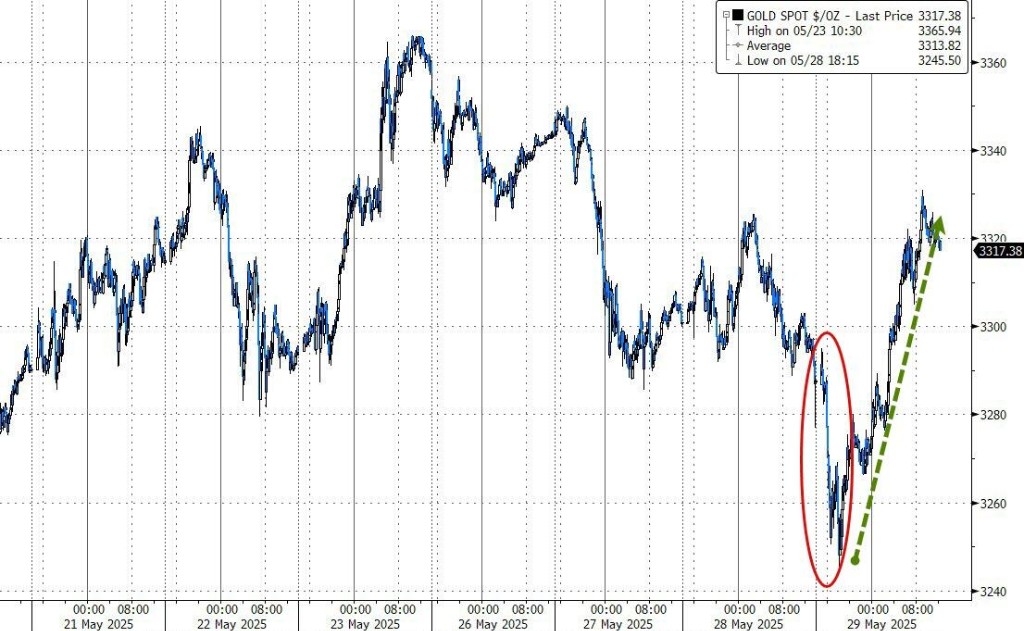 紐約尾盤,現貨黃金漲 0.92%,報 3317.94 美元/盎司,北京時間 09:19 跌至 3245.50 美元刷新日低,隨後持續上行。