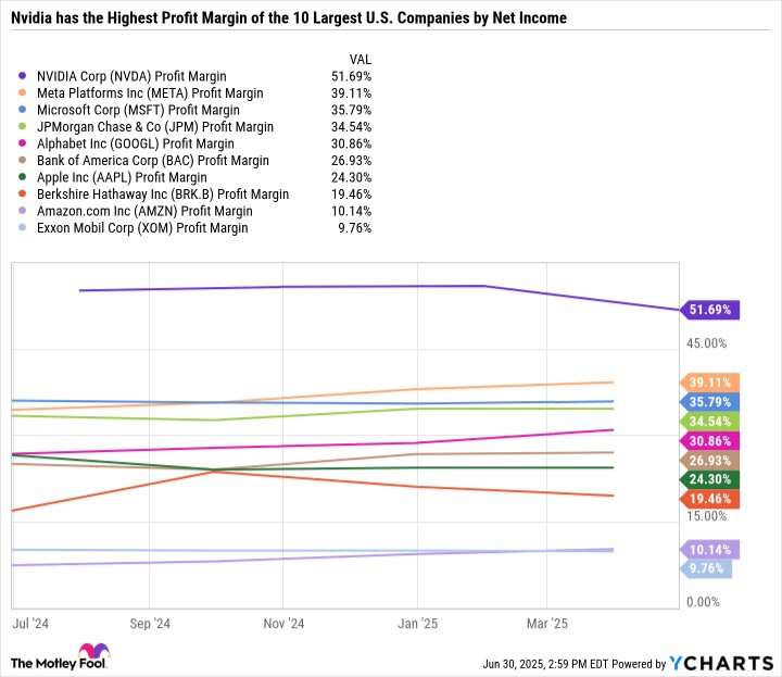 英偉達將超過一半的銷售額轉化為淨收入——對於一家設計實體產品而非銷售軟件或運營數字生態系統的公司來説,這實在是令人難以置信。
