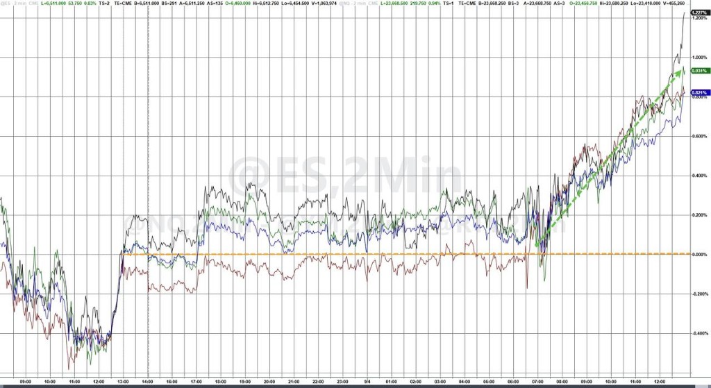 標普 500 指數收漲 53.82 點,漲幅 0.83%,報 6502.08 點,勉強突破 8 月 28 日所創收盤歷史最高位 6501.86 點。