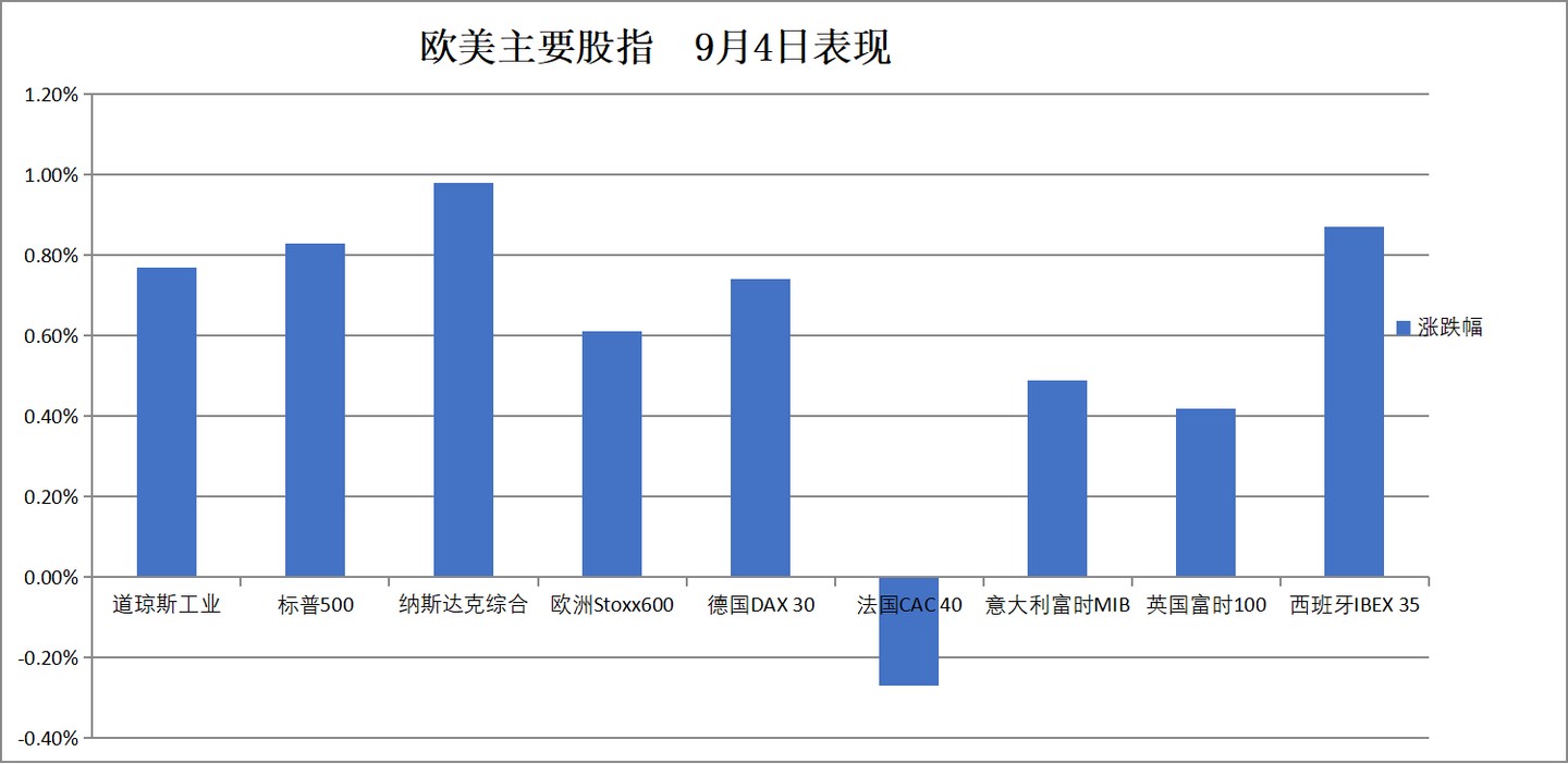 (9 月 4 日 歐美主要股指表現)