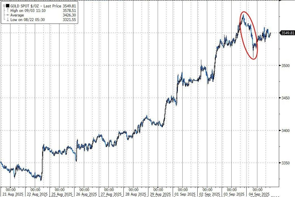 紐約尾盤,現貨黃金跌 0.40%,報 3545.26 美元/盎司,日內交投區間為 3564.32-3511.62 美元。