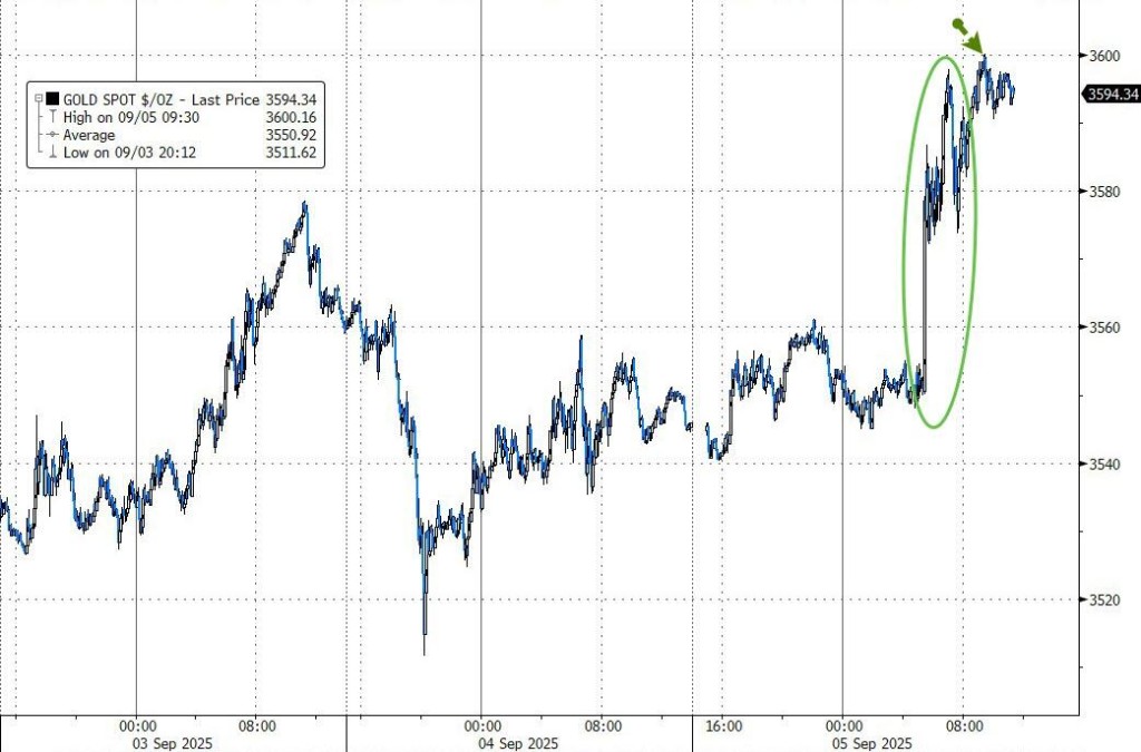 國際金價在非農日短暫突破 3600 美元,和費城金銀指數、金礦開採商指數創歷史新高。