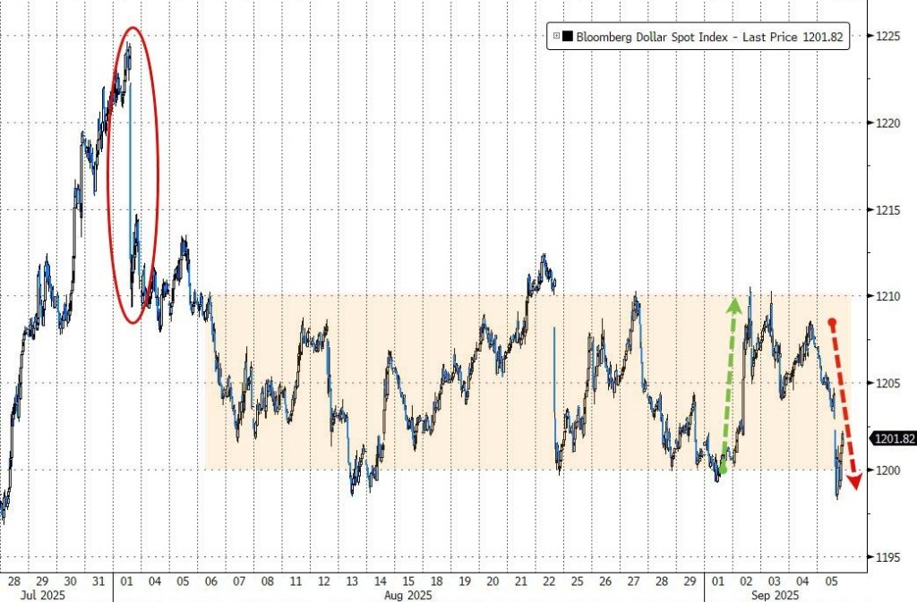 美股盤前,華爾街見聞撰文,美國 8 月非農新增就業 2.2 萬大幅低於預期,失業率 4.3% 創近四年新高,大幅提振了市場對美聯儲的降息預期。美債收益率全線下挫,2 年期跌至 2022 年以來最低水平。美元指數大幅下跌,隨後一度較昨日紐約尾盤跌逾 0.9%。