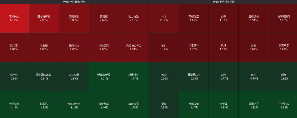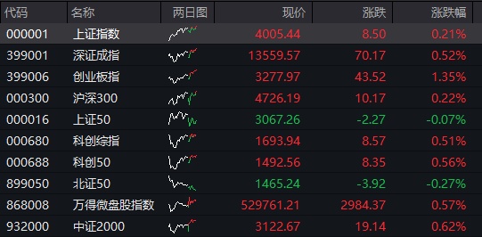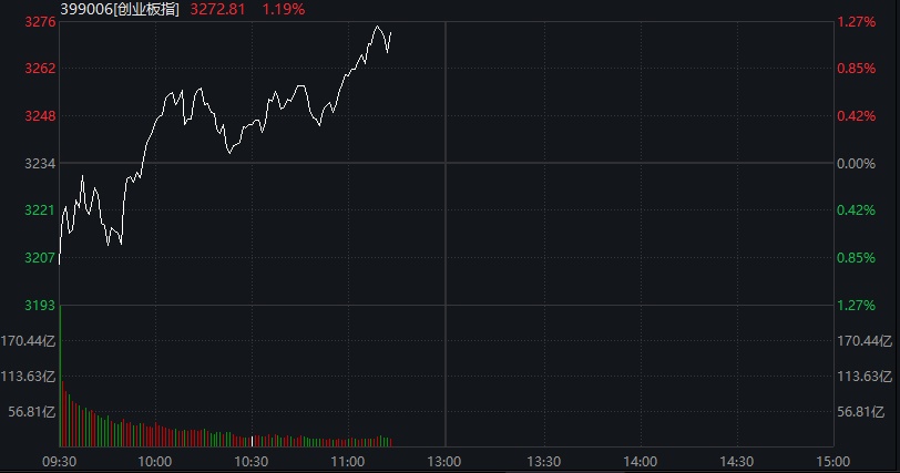 創業板指拉昇漲逾 1%,滬指漲 0.12%,深成指漲 0.30%。福建、核聚變、軍工等方向漲幅居前,滬深京三市上漲個股近 2900 只。
