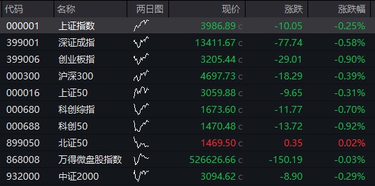 上證指數低開 0.25%,創業板指跌 0.9%。
