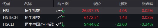 港股:截至午盤收盤,恒指漲 0.02%,恆科指漲 0.02%。
