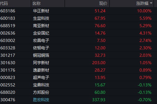 科技股普遍回調,存儲芯片,覆銅板概念跌幅居前,勝宏科技績後跌近 6%,Q3 淨利潤環比小幅下滑;福建板塊持續活躍,稀土、光伏、核聚變概念造好。