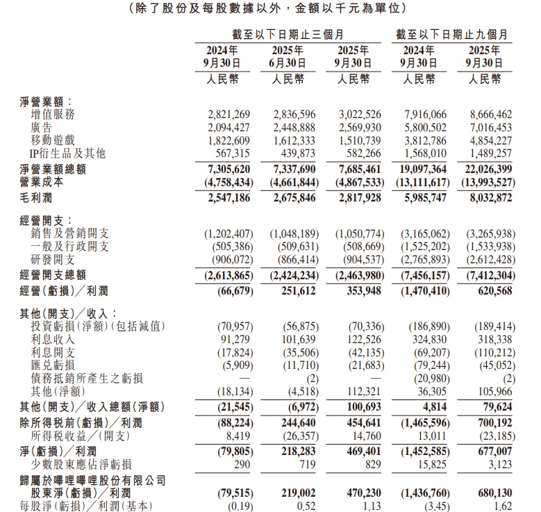 嗶哩嗶哩財報顯示,2025 年第三季度,日均活躍用户(日活用户)達 1.173 億,同比增長 9%。