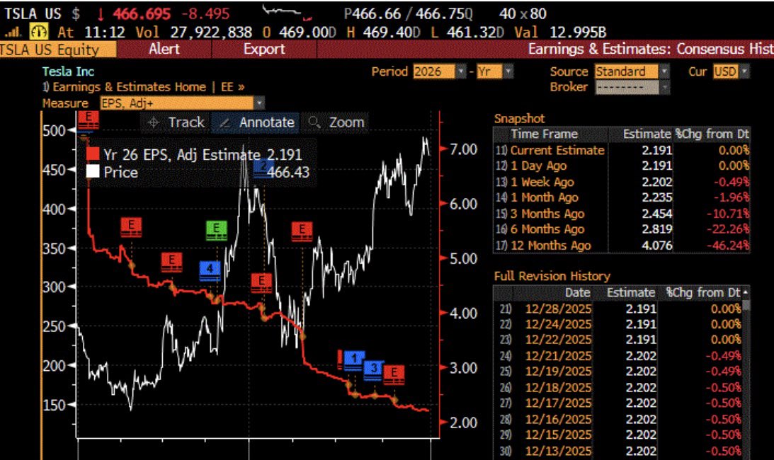 對於$特斯拉(TSLA.US)來説,發佈帶有季度交付量共識預期的新聞稿是非常不尋常的。有趣的是,彭博共識(由於依賴分析師及時更新預測,往往滯後)顯示第四季度交付共識為 44.5 萬輛,而投資者關係部門得出的共識為 42.3 萬輛。顯然,特斯拉內部有人希望投資者關係部門的共識儘可能廣泛傳播。這讓我認為第四季度的實際交付量更可能在 42 萬輛左右,而非 44.5 萬輛。