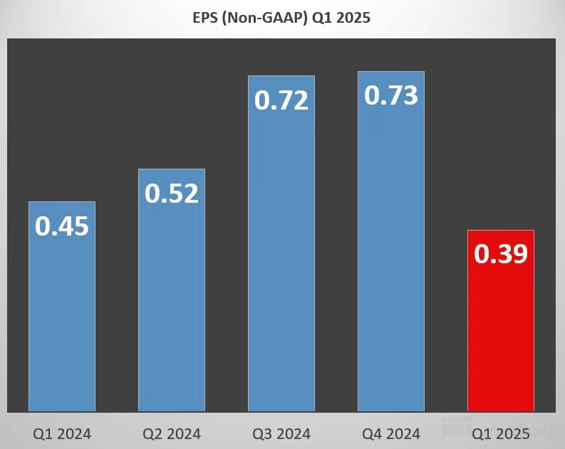 - 非 GAAP 每股盈餘(EPS):0.39 美元(市場共識:0.44 美元)