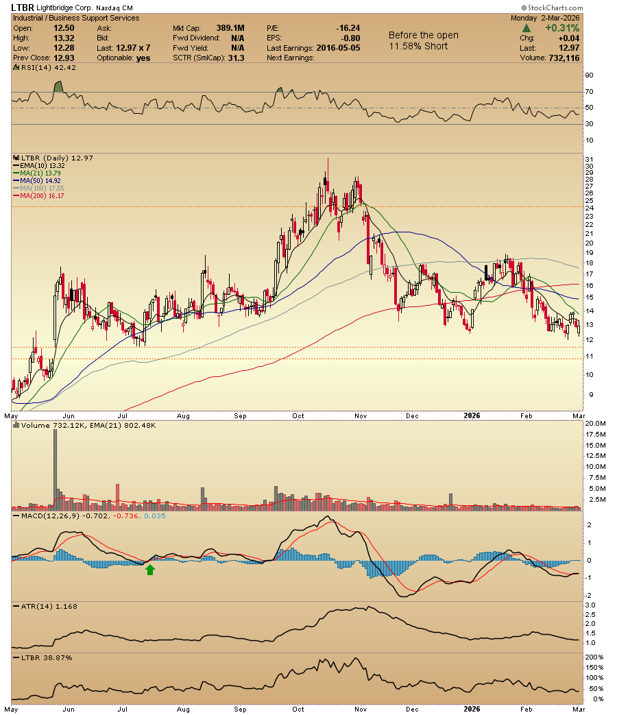 $Lightbridge(LTBR.US) 關注下方支撐位的缺口