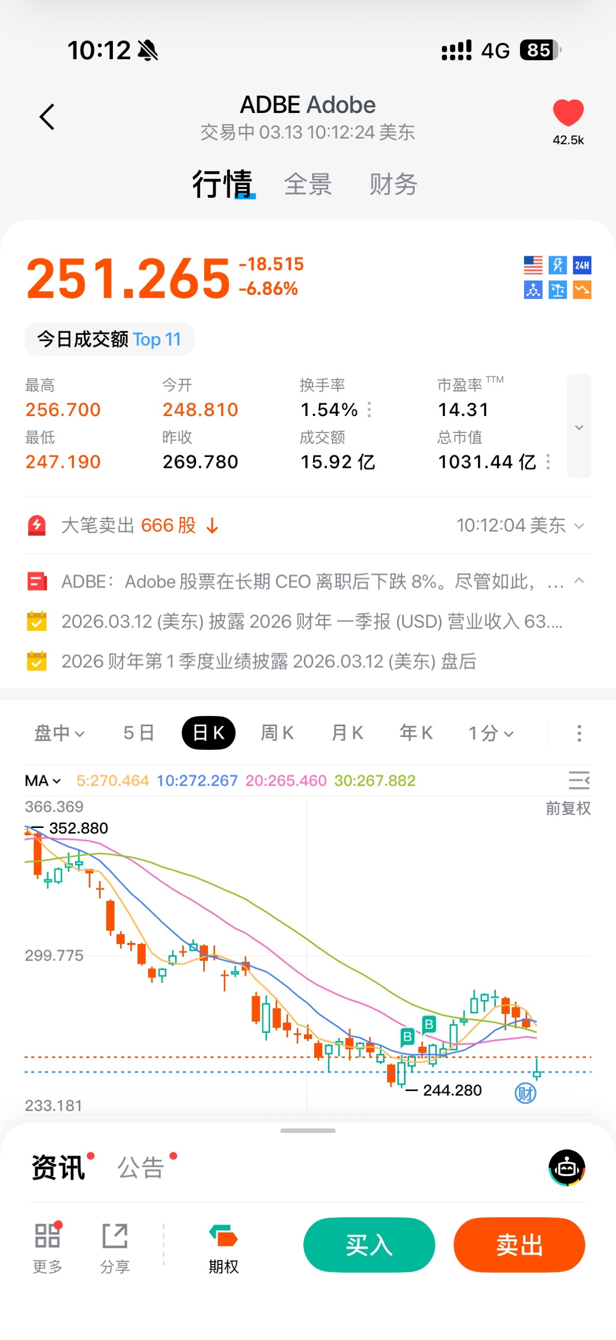 Adobe 啊,怎麼回事啊,為什麼一買就跌一賣就漲啊?今晚補倉,我就不信了,直接 allin!佛了!