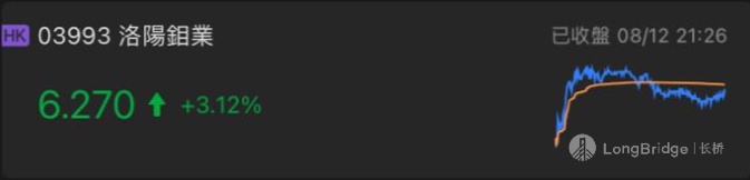 4.$洛陽鉬業(03993.HK) 週四終於秀出了實力,非常好,非常好,站穩 6 元啥都好!支持 6.15,上望 6.6,隔壁 2600 中鋁也是站穩 5,新高有望!