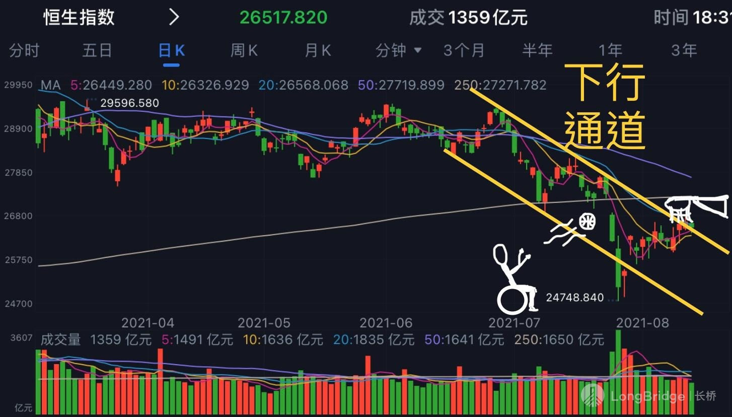 $恆生指數(00HSI.HK) 週四受到科技股的拖累,午後無力挽回,震盪下走,在 26350 附近收到支持,尾盤再硬拉上去 26500 樓上,勉強叫做返回了趨勢突破之位,這裡週五要關注好,下方不要再穿太多了,否則淡友佔據上風後發難,下方失守缺堤。週五恆指再考驗 26350,希望能守住反攻,這樣才能殺淡友一個措手不及。否則下穿的話,真是沒有什麼意欲去購物了!而且要檢視一下手上有什麼股在跟大盤走弱,甚至比大盤更弱,那些必須先剁手!
