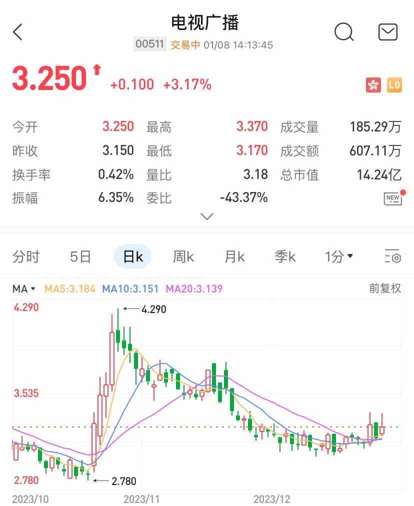 電視廣播(00511)股價近期表現強勁,受到公司舉行的職藝員新春盆菜宴和薪資加薪的消息的影響。本文將從消息面、基本面、技術面等多個角度對電視廣播的股價上漲進行分析解讀。