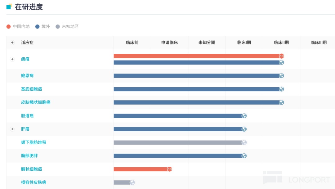在腫瘤領域,$聖諾醫藥-B(02257.HK) 針對 STP705 佈局了豐富的適應症,包括鱗狀細胞原位癌(isCCC)、基底細胞癌(BCC)、肝癌(籃式)包括膽管癌、肝細胞癌、肝轉移癌等。其中,針對 BCC 的 II 期臨牀數據顯示,在最佳臨牀劑量 180μg 下的 5 名患者,實現了 100% 的組織學清除,即完全清除(CR),同時安全性良好,沒有明顯皮膚不良反應。