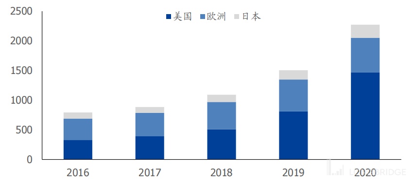 根據 IQVIA 數據顯示,2016-2020 年,美國 ADC 市場銷售額從 3.29 億美元增長至 14.7 億美元元,年均複合增長率高達 45%;歐洲、日本 2020 年市場銷售額分別增長到 5.81 億美元、2.22 億美元,年均複合增長率分別為 13% 和 21%。