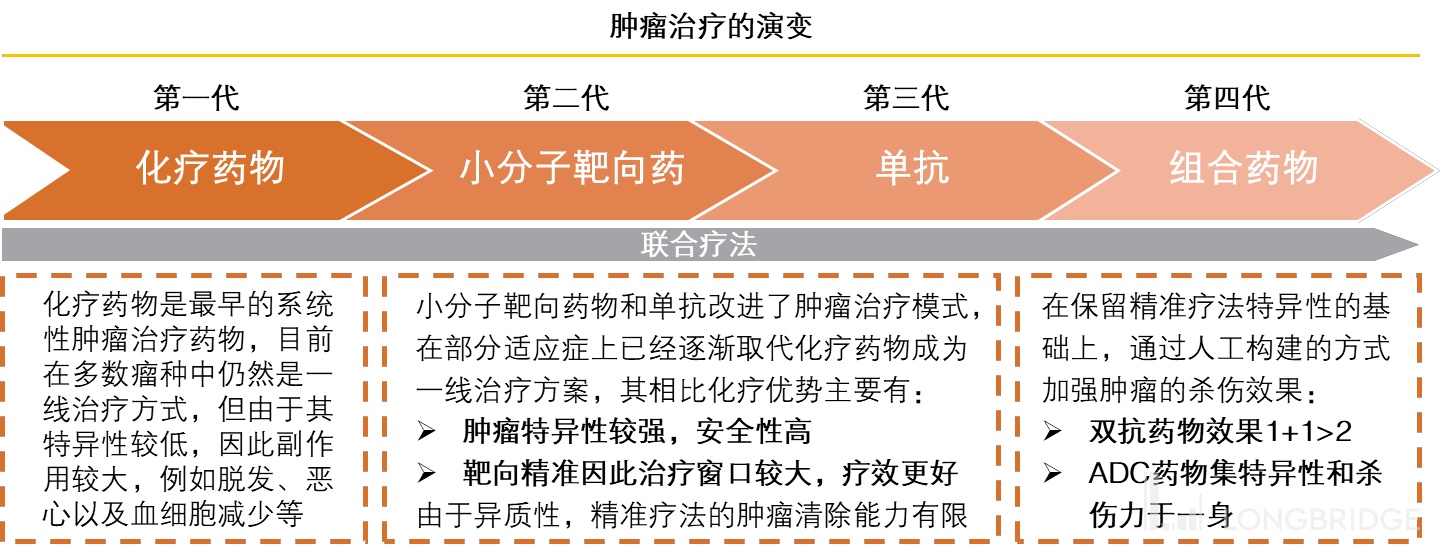 基於此,腫瘤治療的第四代組合藥物——雙抗、ADC 藥物應運而生。