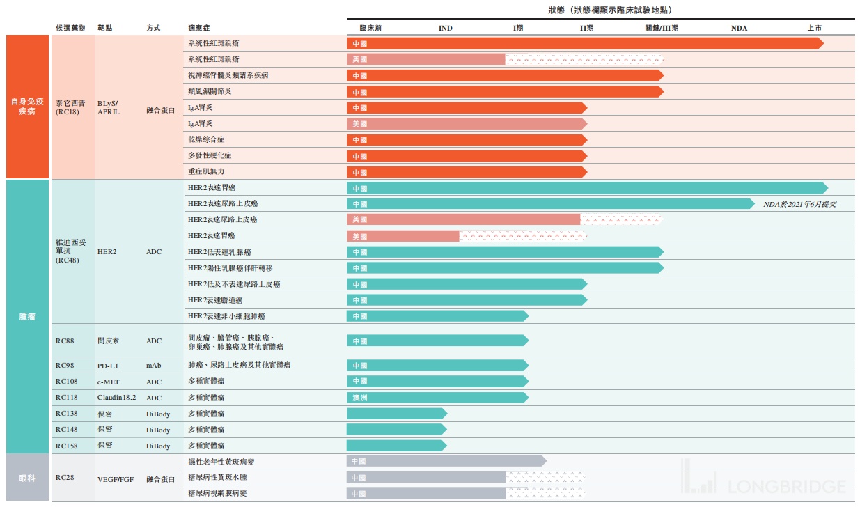 榮昌生物的研發管線(在研產品數據截至 2021 年 6 月 30 日)資料來源:公司財報