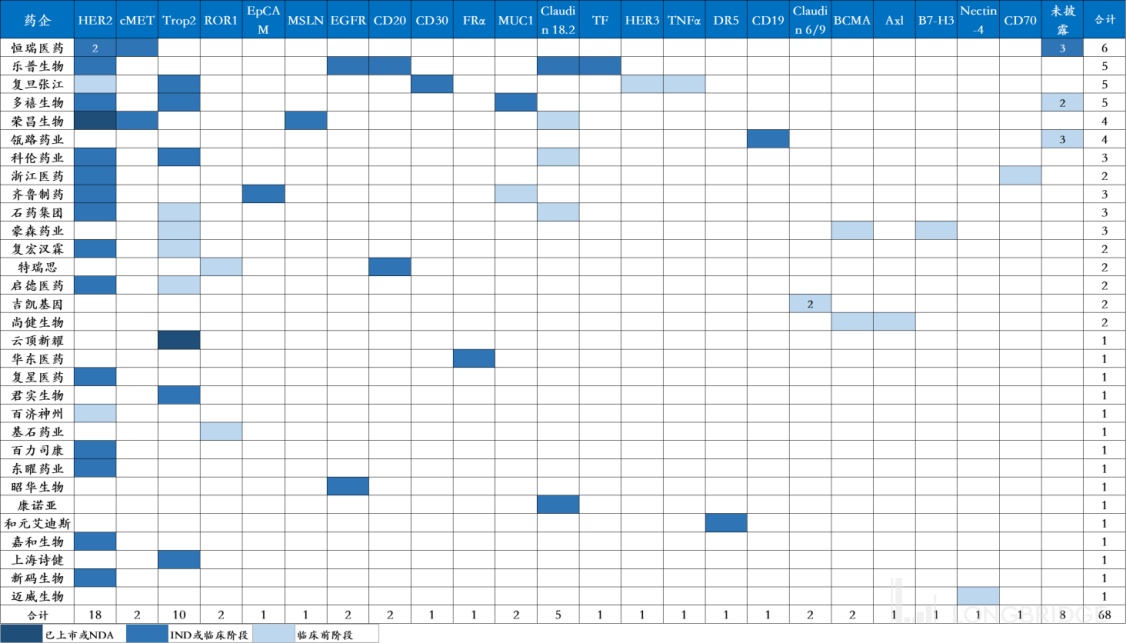 靶點方面。ADC 藥物呈現出靶點多樣化、佈局擴大化的現象。