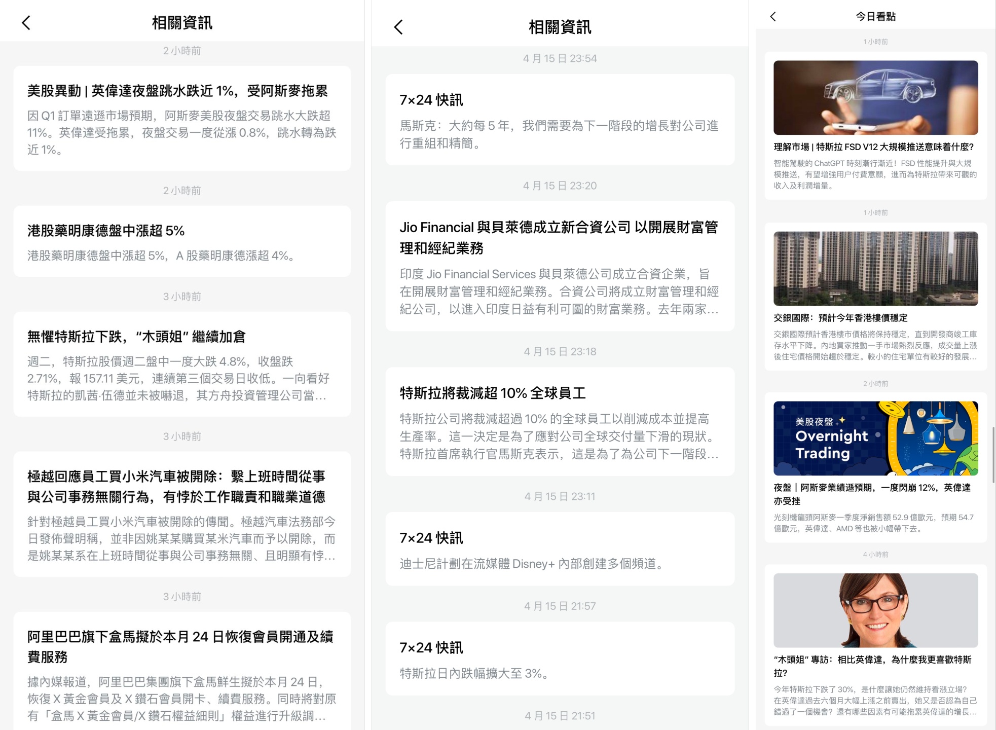 - 相關資訊欄目會爲你推送自選股突發新聞和行情速遞;