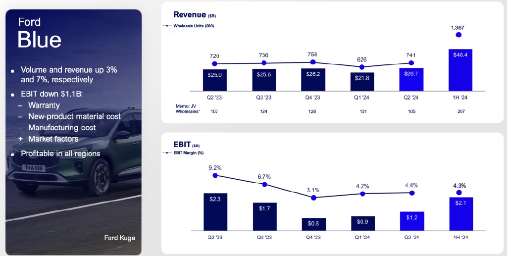 福特 Blue EBIT 為 12 億美元,在其運營的每個地區都實現了盈利(歐洲和中國,都開始小本經營了)。
