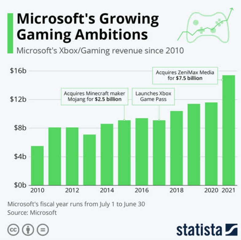 通過收購暴雪,藉助 King 和 Candy Crush,公司可以在此前未曾涉及的移動端遊戲市場上有一定地位;同樣能借助此次收購獲得暴雪的額外 4 億月活用户,讓 Game Pass 成為遊戲內容最大供應商之一。