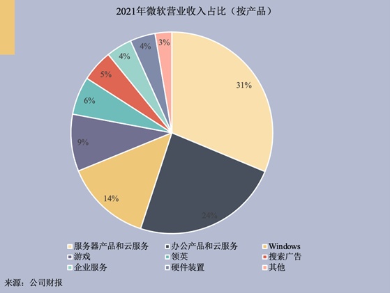 Microsoft 公司業務(雲服務、辦公軟件系統、電腦操作系統、遊戲、職場社交、搜索引擎等)
