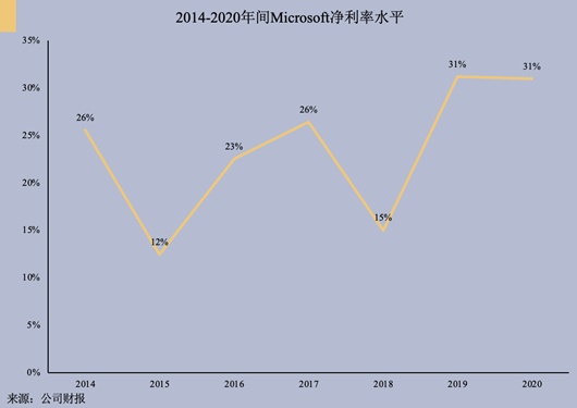 自研和併購共同驅動的遊戲業務。微軟在遊戲行業紮根已深,2020 年遊戲業務營收是 154 億美金,已經佔據 1.8 千億美金視頻遊戲市場的 8.3%,同樣也貢獻了公司 11% 的營收。在美國的遊戲網絡領域,微軟佔據半壁江山。據路透估計,暴雪收購案之後微軟會佔據全球遊戲市場 10.7% 的市場份額,排名第二。公司同時通過併購獲得暴雪等優質資產。視頻遊戲行業近年增速有所放緩,預計增速不超過 10%;公司遊戲業務 FY2015-2021 CAGR11%,略高於行業增速。
