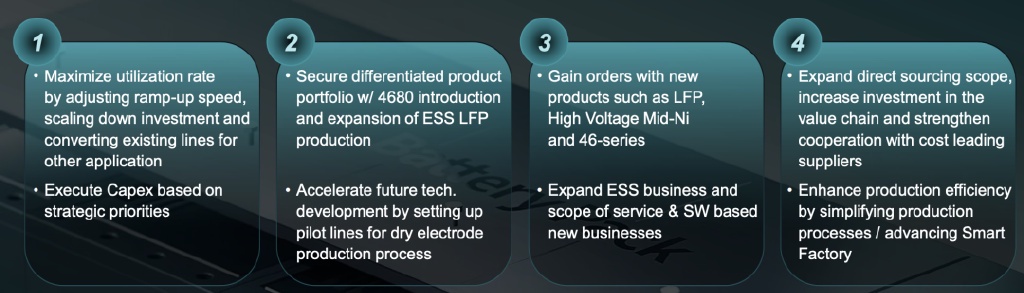 ● LG 能源解決方案則計劃在韓國梧井工廠於 2024 年底或 2025 年初啓動 4680 電池的大規模生產,並有望成為特斯拉的供應商之一。