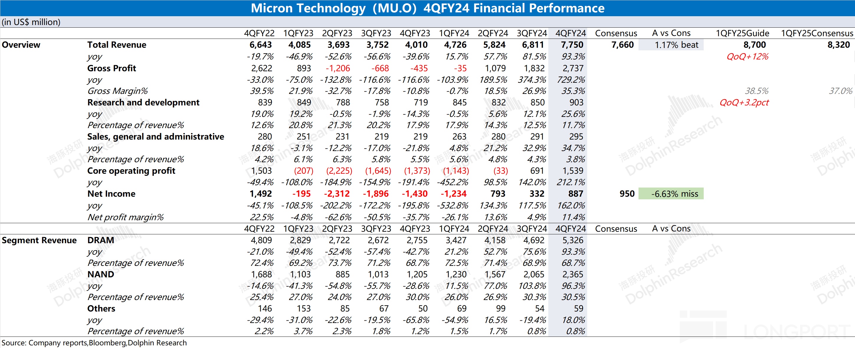 美光(MU.O)於北京時間 2024 年 9 月 26 日早的美股盤後發佈了 2024 財年第四季度財報(截止 2024 年 8 月),要點如下: