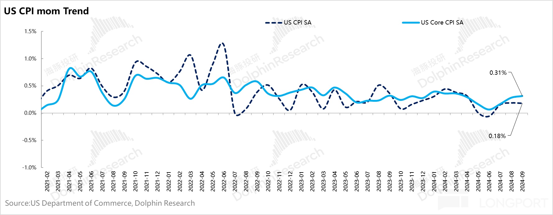 美國截至目前已經發布的 9 月經濟數據中,不僅 PMI 和就業數據大超了市場預期,而且市場非常擔心美國降息 + 中國刺激可能會推動全球二次通脹的情況下,上週美國發布的 9 月通脹還明顯有點秋老虎的意思。