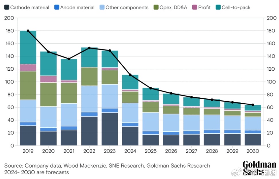 高盛給出的預測,其實在中國已經實現了,接下來電池的價格下降更是全球性的。