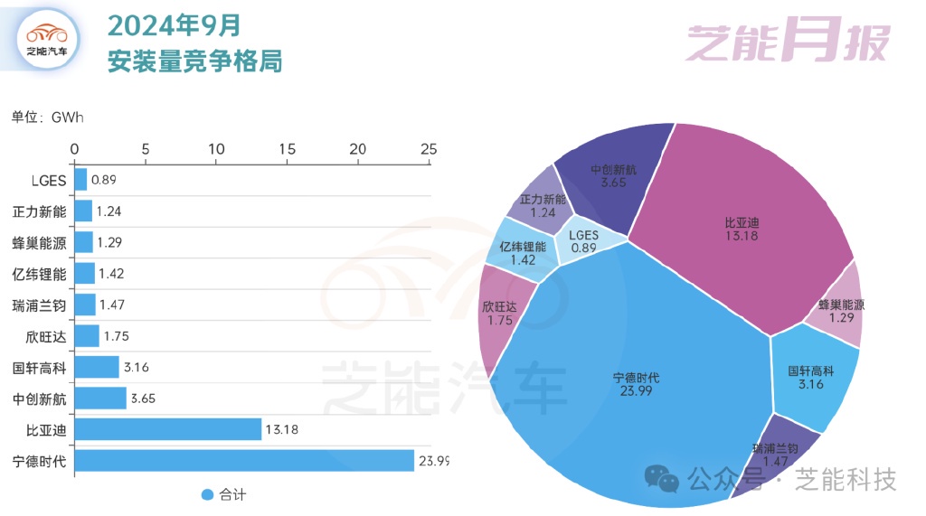 芝能月報 | 動力電池市場 2024 年 9 月競爭格局分析