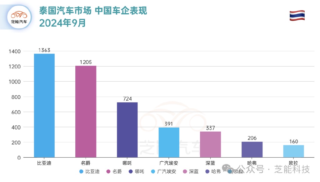 ● 中國品牌比亞迪和名爵也表現出色,銷量分別為 1,363 輛和 1,205 輛。